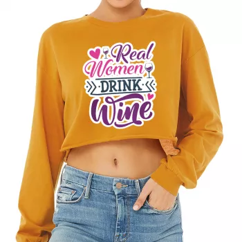 Real Women Cropped Long Sleeve T-Shirt – Wine Women’s T-Shirt – Printed Long Sleeve Tee
