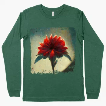 Red Dahlia Flower Long Sleeve T-Shirt – Art T-Shirt – Graphic Long Sleeve Tee Shirt