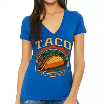 Taco Print Women’s V-Neck T-Shirt – Food V-Neck Tee – Cool Graphic T-Shirt