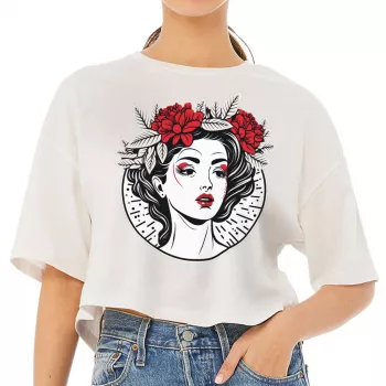 Floral Design Women’s Crop Tee Shirt – Cool Graphic Cropped T-Shirt – Illustration Crop Top