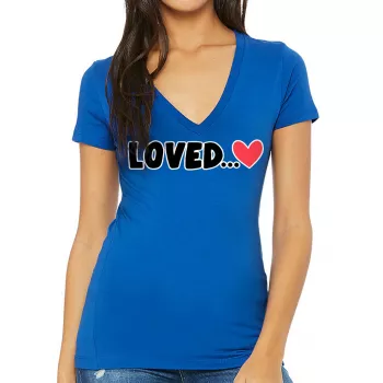Loved Women’s V-Neck T-Shirt – Cute Heart V-Neck Tee – Themed T-Shirt
