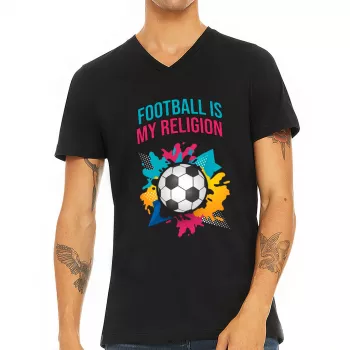 Soccer Ball V-Neck T-Shirt – Colorful T-Shirt – Printed V-Neck Tee