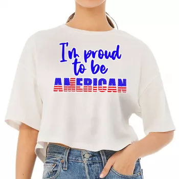 Proud to Be American Women’s Crop Tee Shirt – Patriotic Cropped T-Shirt – USA Flag Crop Top