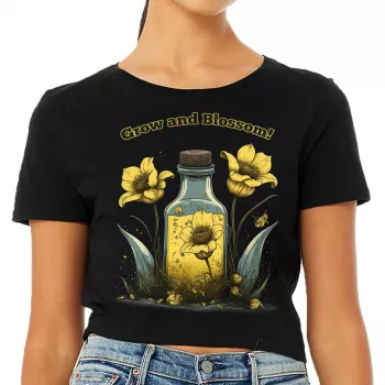 Yellow Flowers Women’s Cropped T-Shirt – Grow and Blossom Crop Top – Art Cropped Tee