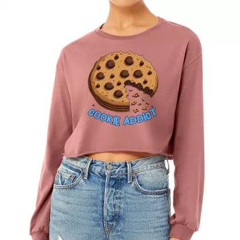 Cookie Cropped Long Sleeve T-Shirt – Cute Design Women’s T-Shirt – Funny Graphic Long Sleeve Tee