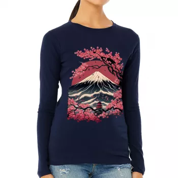 Japan Art Women’s Long Sleeve T-Shirt – Blossom Long Sleeve Tee – Landscape T-Shirt