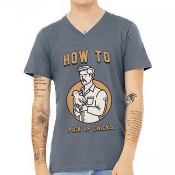 How to Pick Up Chicks V-Neck T-Shirt – Funny T-Shirt – Graphic V-Neck Tee