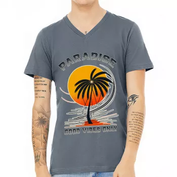Good Vibes Only V-Neck T-Shirt – Paradise T-Shirt – Palm Tree V-Neck Tee