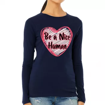 Be a Nice Human Women’s Long Sleeve T-Shirt – Heart Print Long Sleeve Tee – Graphic T-Shirt