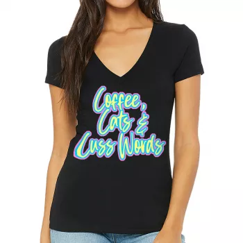 Cats Coffee Cuss Words Women’s V-Neck T-Shirt – Funny V-Neck Tee – Trendy T-Shirt