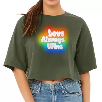 Love Always Wins Women’s Crop Tee Shirt – Colorful Cropped T-Shirt – Kawaii Crop Top