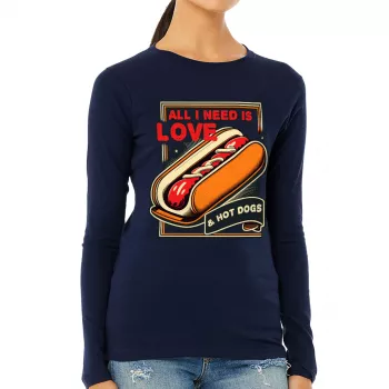 I Love Hot Dogs Women’s Long Sleeve T-Shirt – Food Graphic Long Sleeve Tee – Best Design T-Shirt
