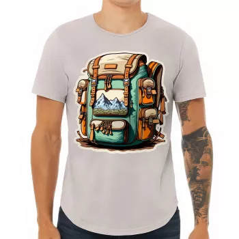 Backpack Print Curved Hem T-Shirt – Travel Lover T-Shirt – Mountain Curved Hem Tee