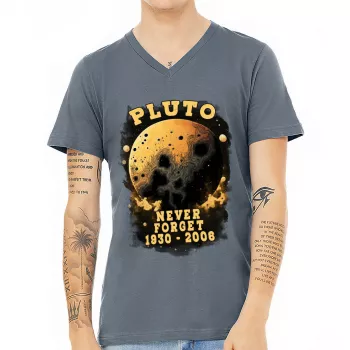 Pluto Never Forget V-Neck T-Shirt – Space T-Shirt – Trendy V-Neck Tee