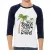 features raglan 3/4 sleeves and a modern fit that is perfect for a day