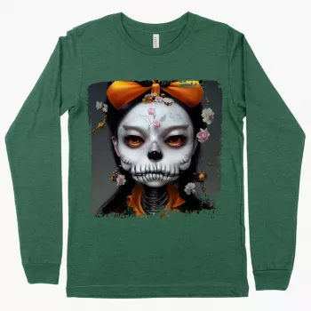 Skull Print Long Sleeve T-Shirt – Novelty Skeleton T-Shirt – Creepy Girl Long Sleeve Tee Shirt