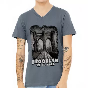 Brooklyn We Go Hard V-Neck T-Shirt – Bridge T-Shirt – Themed V-Neck Tee