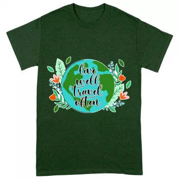 Live Well Travel Often Heavy Cotton T-Shirt – Graphic Tee Shirt – Unique T-Shirt