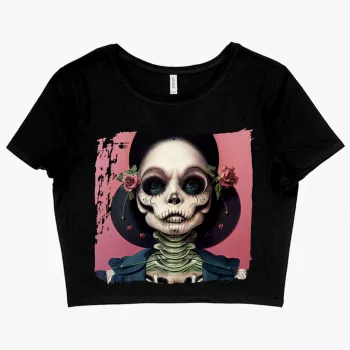 3D Skull Women’s Cropped T-Shirt – Skeleton Crop Top – Halloween Themed Crop Tee Shirt