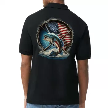 Flag Behind Bass Fishing Jersey Sport T-Shirt – Patriotic T-Shirt – Cool Sport Tee