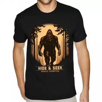 Bigfoot Hide and Seek Champion Sueded T-Shirt – Cute T-Shirt – Illustration Sueded Tee
