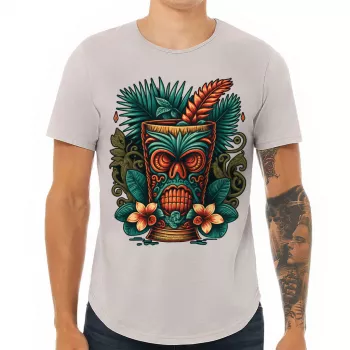 Hawaii Tiki Curved Hem T-Shirt – Tropical T-Shirt – Floral Curved Hem Tee