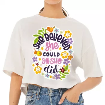 She Believed She Could So She Did Women’s Crop Tee Shirt – Inspirational Cropped T-Shirt – Printed Crop Top