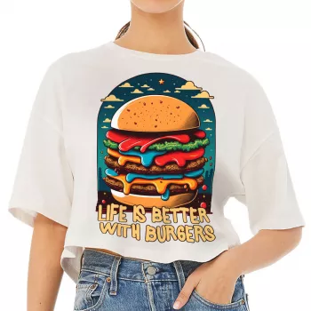 Burger Print Women’s Crop Tee Shirt – Quote Cropped T-Shirt – Illustration Crop Top