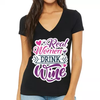 Real Women Women’s V-Neck T-Shirt – Wine V-Neck Tee – Printed T-Shirt