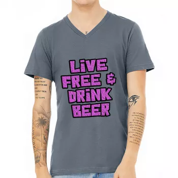 Live Free V-Neck T-Shirt – Drink Beer T-Shirt – Cool V-Neck Tee