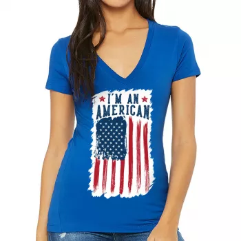 I am an American Women’s V-Neck T-Shirt – USA Flag V-Neck Tee – Patriotic T-Shirt