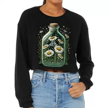 Beautiful Cropped Long Sleeve T-Shirt – Cammomile Women’s T-Shirt – Art Long Sleeve Tee
