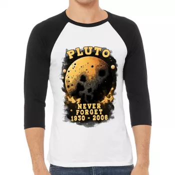 Pluto Never Forget Baseball T-Shirt – Space T-Shirt – Trendy Baseball Tee