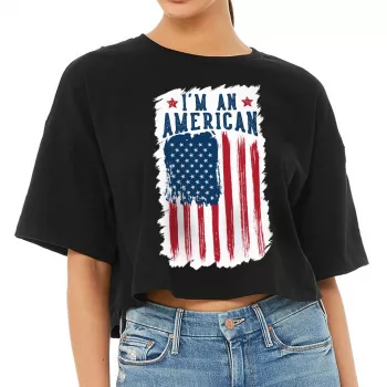 I am an American Women’s Crop Tee Shirt – USA Flag Cropped T-Shirt – Patriotic Crop Top