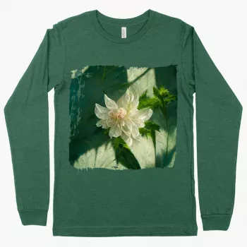 White Dahlia Flower Long Sleeve T-Shirt – Art T-Shirt – Printed Long Sleeve Tee Shirt