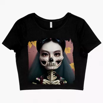 Cool Skeleton Women’s Cropped T-Shirt – Floral Crop Top – Halloween Print Crop Tee Shirt