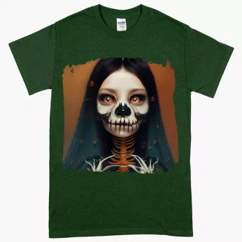 Creepy Girl Heavy Cotton T-Shirt – Gothic Print Tee Shirt – Skeleton T-Shirt