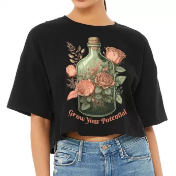 Roses Women’s Crop Tee Shirt – Grow Your Potential Cropped T-Shirt – Graphic Crop Top
