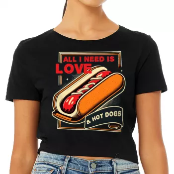 I Love Hot Dogs Women’s Cropped T-Shirt – Food Graphic Crop Top – Best Design Cropped Tee