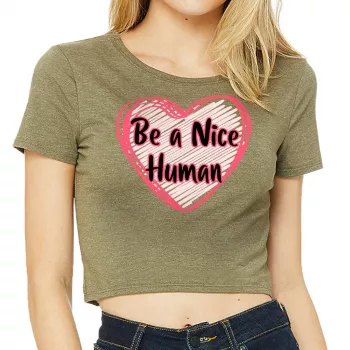 Be a Nice Human Women’s Cropped T-Shirt – Heart Print Crop Top – Graphic Cropped Tee