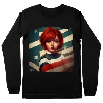 Girl With Red Hair American Flag Long Sleeve T-Shirt – Print T-Shirt – Flag Long Sleeve Tee Shirt