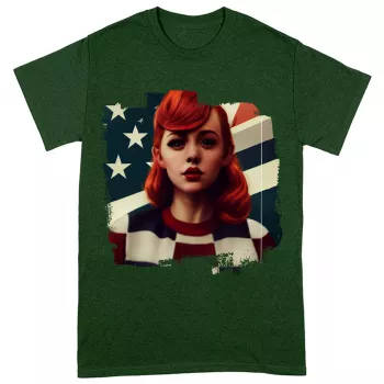 Girl Red Hair American Heavy Cotton T-Shirt – Patriotic Tee Shirt – Art T-Shirt