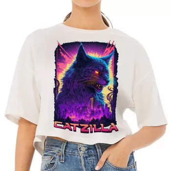 Funny Cat Women’s Crop Tee Shirt – Psychedelic Cropped T-Shirt – Cool Graphic Crop Top