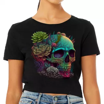 Skull Graphic Women’s Cropped T-Shirt – Gothic Crop Top – Cool Art Cropped Tee