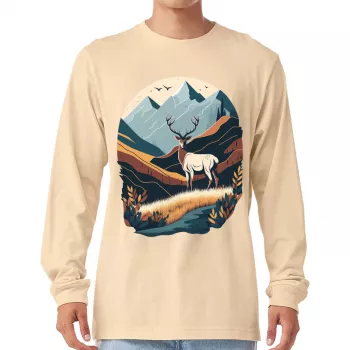 Nature Print Long Sleeve T-Shirt – Deer T-Shirt – Landscape Long Sleeve Tee