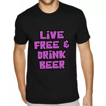 Live Free Sueded T-Shirt – Drink Beer T-Shirt – Cool Sueded Tee