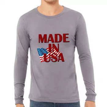 Made in USA Long Sleeve T-Shirt – American Flag T-Shirt – Patriotic Design Long Sleeve Tee