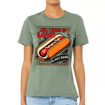 I Love Hot Dogs Women’s T-Shirt – Food Graphic T-Shirt – Best Design Relaxed Tee