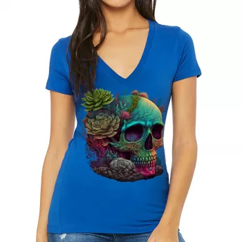 Skull Graphic Women’s V-Neck T-Shirt – Gothic V-Neck Tee – Cool Art T-Shirt
