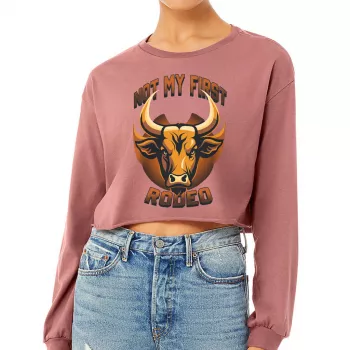 Not My First Rodeo Cropped Long Sleeve T-Shirt – Bull Design Women’s T-Shirt – Cool Graphic Long Sleeve Tee